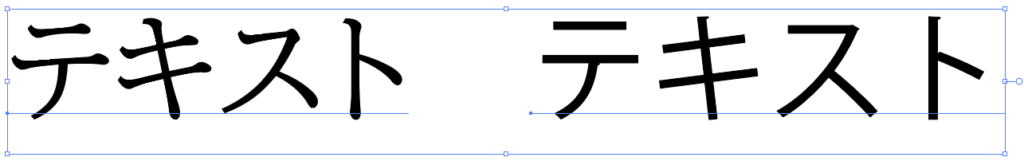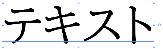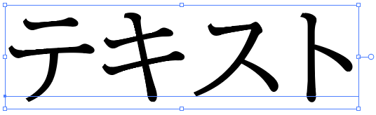 まず、アウトライン化したいテキスト(文字)を「選択ツール(黒い矢印)」でクリックして選択します。選択されているテキストは以下のように青い線で囲まれます。