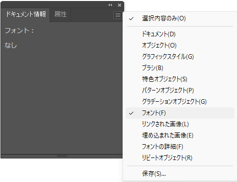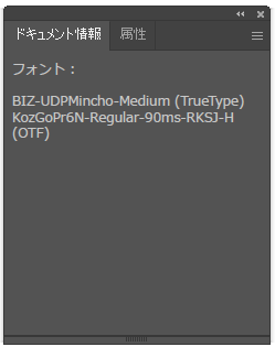- 入稿前チェックとして「ドキュメント情報」でフォントが「なし」か確認する。