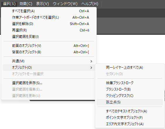 孤立点(文字を消した後に残る透明な点)がフォントとして認識されてしまうこともあります。そんな時は「オブジェクト > パス > 孤立点を消去」を実行すると、データが綺麗になりますよ。