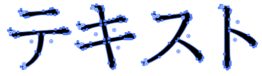 アウトライン化に成功すると、文字の周りに青い線(パス)と点(アンカーポイント)が表示されます。